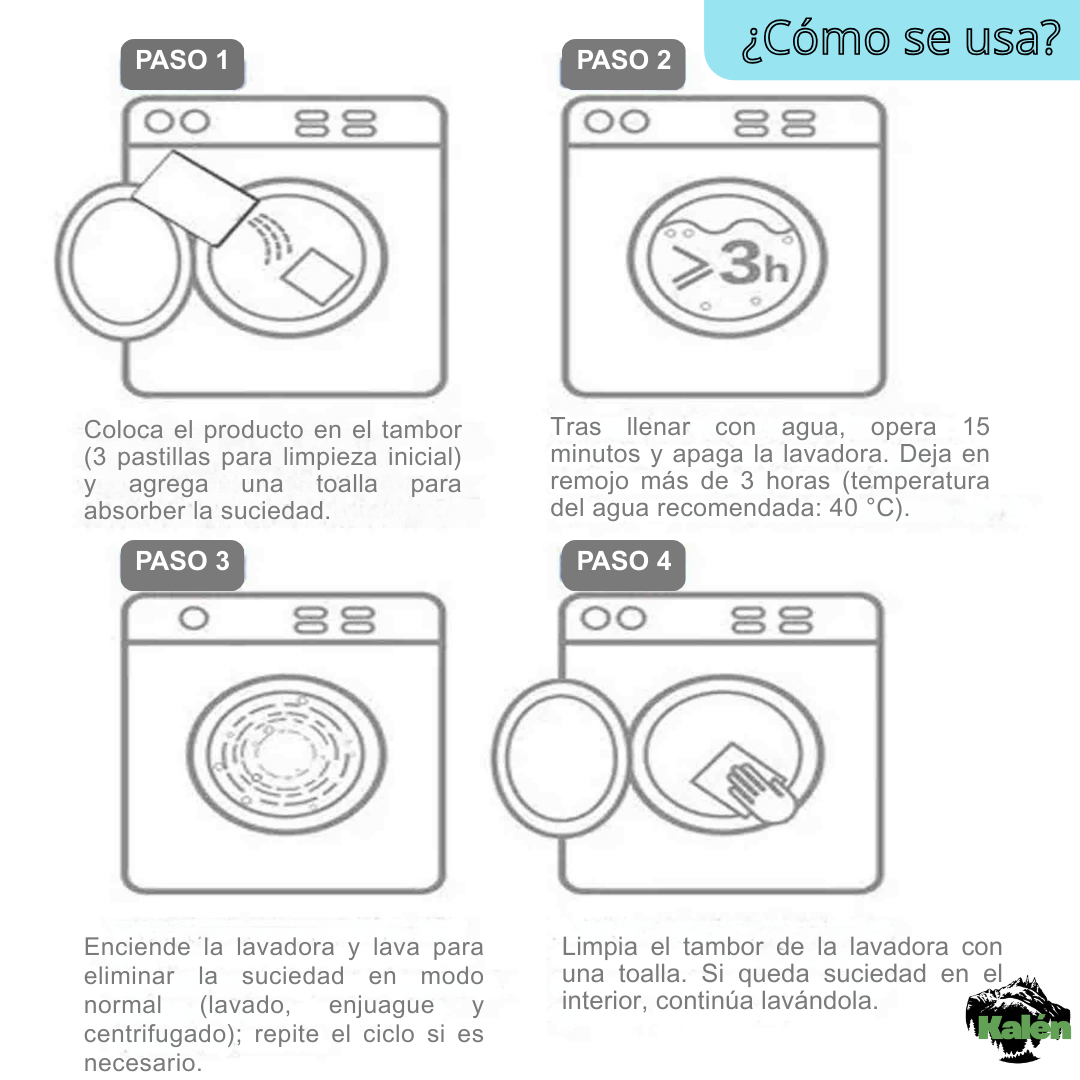 📌 Limpieza inicial (recomendada): usa 3 pastillas.